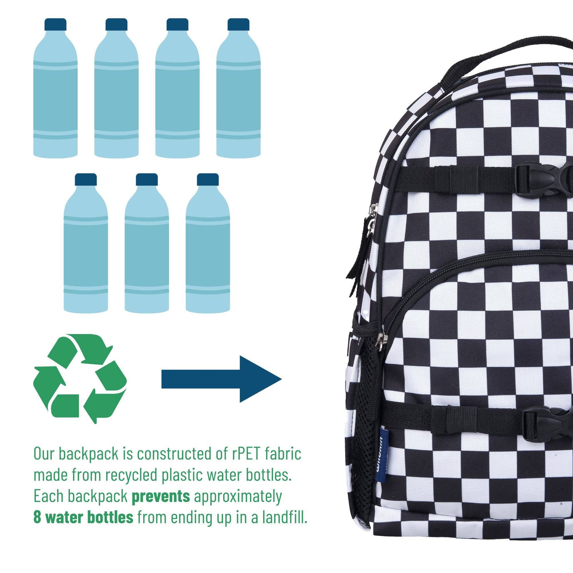 Black and White Checkered Medium Eco Backpack - 12L